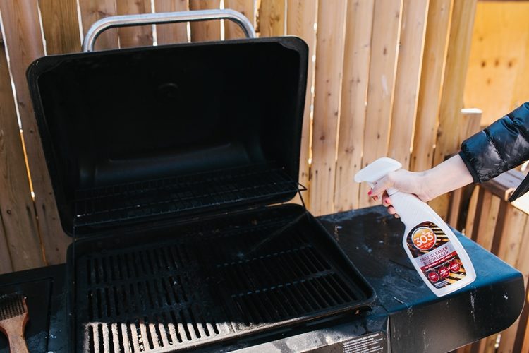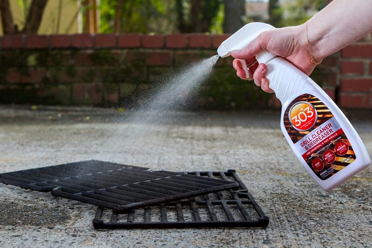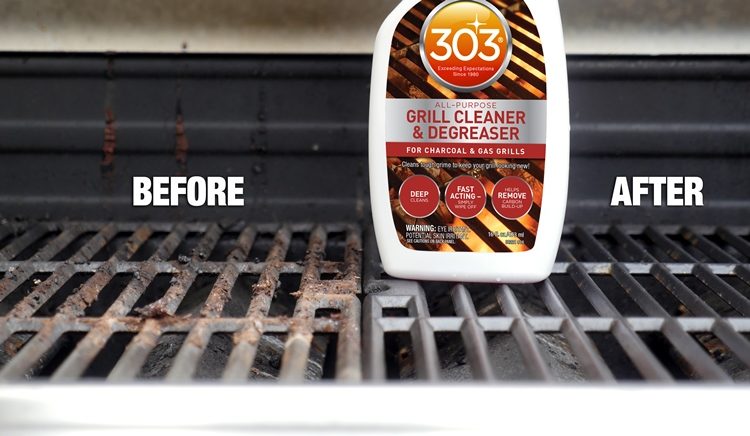 To Clean Interior of Grill: Remove any excess charred food and debris from grates before using. Spray product directly onto the grate and allow 1-2 minutes for product to start de-greasing. For heavily soiled areas, additional soak/wait time may be needed. Use grill brush to help aid in the cleaning action, and to help remove stubborn debris. Wipe surface with a clean damp cloth or sponge. To Clean Exterior of Grill: Spray product onto the surface and wipe dry with a clean damp cloth or sponge. For extremely dirty surfaces, additional applications or soak time may be required.