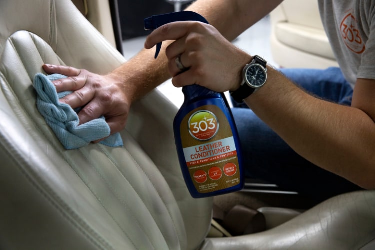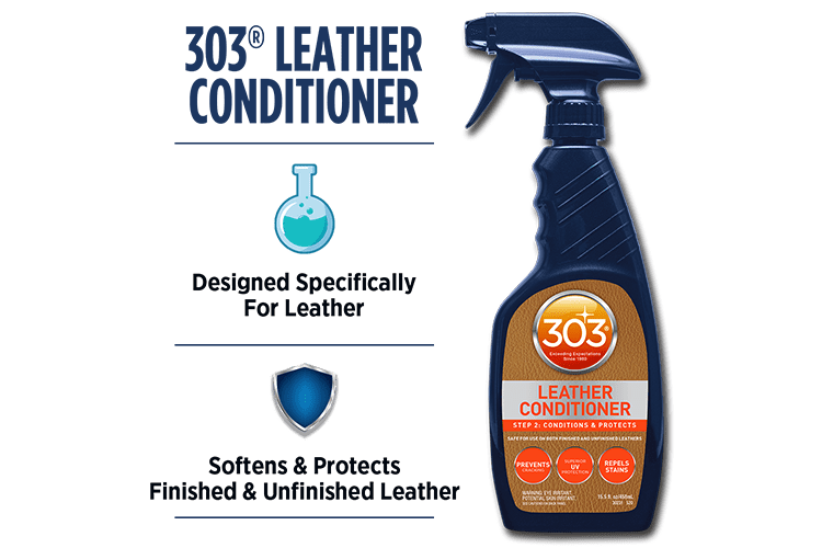 Shake product well before using. Use only on a clean, dry surface. For best results, use 303® Leather Cleaner to clean the leather. Spray product directly onto desired surface or microfiber towel and work into surface. Be sure to treat entire surface for an even layer of protection and to prevent uneven coloring (especially with unfinished leather). Wipe any excess product off surface with a clean, dry microfiber towel. Great for use on a variety of leathers including; automotive and other leather upholstery, shoes, gloves, bags, saddlery, furniture, etc.