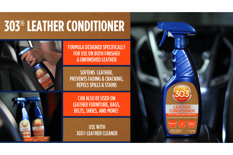 303® Leather Conditioner is safe and can be used on all finished and unfinished leather surfaces, including but not limited to automotive leather, leather shoes, leather furniture, leather bags, and saddlery!