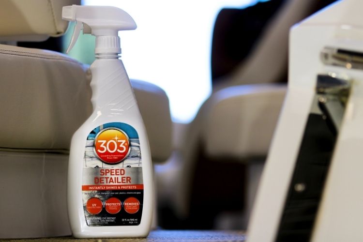 Formulated with powerful UV blockers, 303® Marine Speed Detailer helps prevent fading and oxidation caused by harsh sun exposure. The anti-static finish repels dust, dirt, and stains, while also reducing the appearance of light surface scratches.
