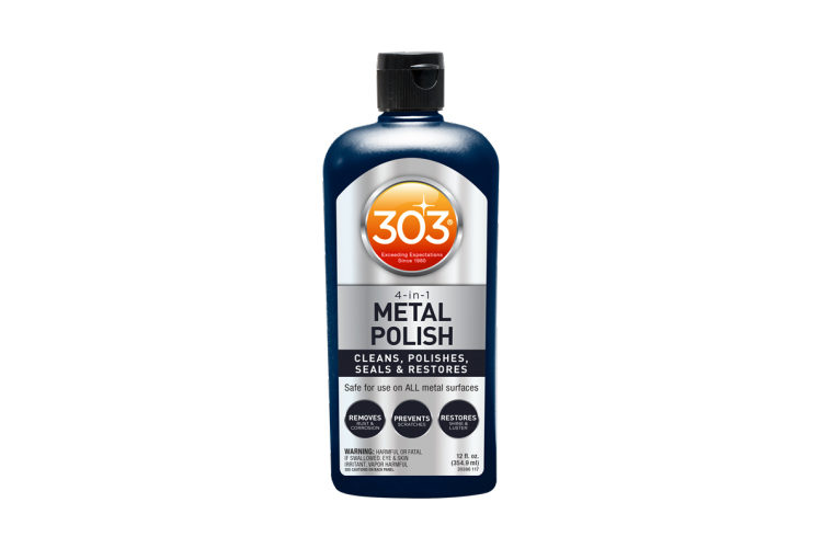 303® 4-in-1 Metal Polish is an easy to use, non-toxic polish that not only cleans/restores your metals but also protects them. It will remove rust & corrosion, and bring your shine back to make it look brand new. It also leaves behind a protective layer to help prevent future scratches and blemishes. This product is safe for use on ANY metal, including: chrome, stainless steel, diamond plate, silver, gold, copper, brass, nickel, Aluminum, magnesium, and more!
