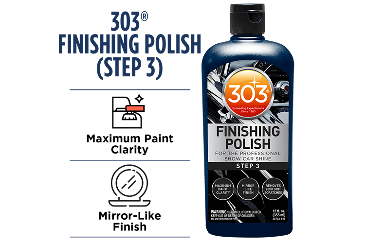 Pro Tip: Complete your finish with 303® Finishing Polish (Step 3) for maximum gloss and mirror-like clarity.