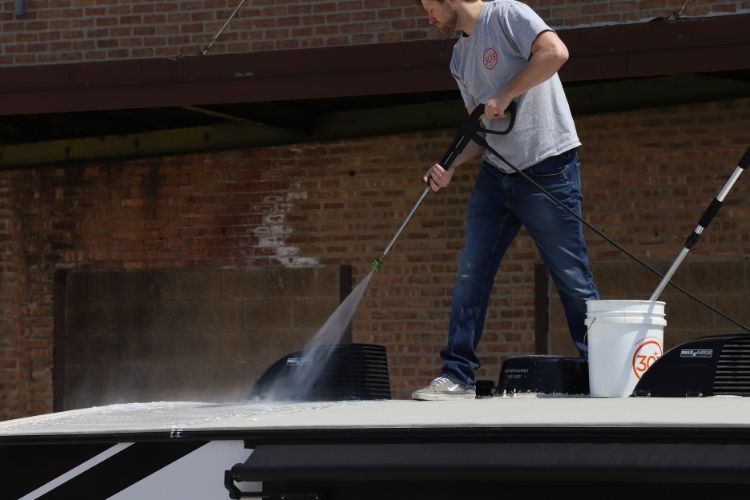 • Cleans and dissolves dirt on rubber roofs on RVs, Campers, Pop-Ups, and Motorhomes
