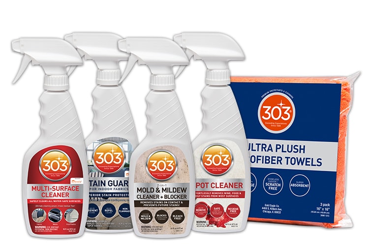 You’re most likely familiar with 303 Fabric Guard – designed to keep your outdoor fabrics water repellent and stain resistant. But now, there’s a product to keep your INDOOR fabrics protected too! So whether you have kids, pets, or hosting your next wine tasting, be sure to use 303 Stain Guard for Indoor Fabrics for the ultimate protection!
