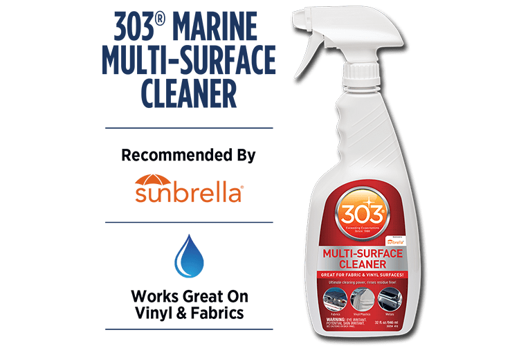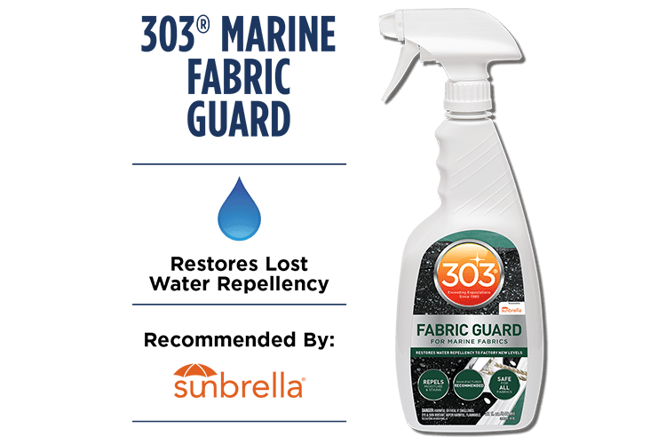 303 Marine Fabric Guard is the only product recommended by and for Sunbrella, as well as other fabric manufacturers to restore lost water repellency to fabrics. Resist water, even when you’re on the water. 303 Fabric Guard creates a powerful shield to greatly increase repellency and protect against oil and water- based stains. Spray it on outdoor leather seats, boat covers, awnings, Dacron sails and more! When applied to clean and dry fabrics, 303 Fabric Guard restores lost water and stain repellency to straight-from-the-factory levels. Keep all your favorite fabrics crisp and clean for years to come.