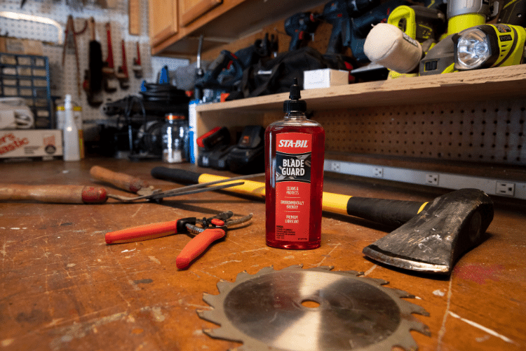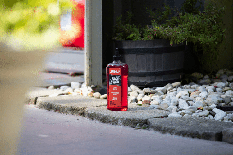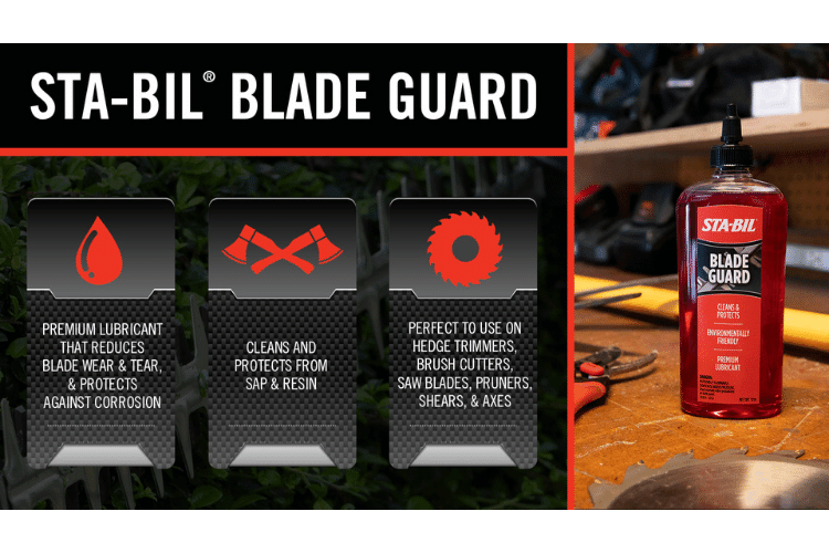 Directions: First, use a brush to remove heavy debris that may be present on your equipment. Once the blade is free of heavy contaminants, apply a generous amount of STA-BIL Blade Guard to the surface and side of the blade. Run for a few seconds to spread the liquid. You are now ready to go.