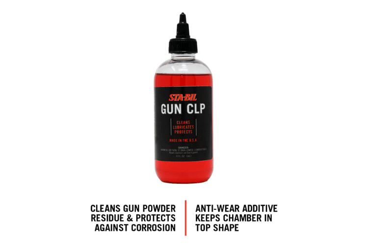 Directions: Before using this product, make sure the weapon is unloaded. Twist top to open. Dispense a small drop of STA-BIL Gun CLP onto manufacturer-recommended locations of the gun for superior lubrication. This can also be used to clean and protect the gun’s components from corrosion and wear.