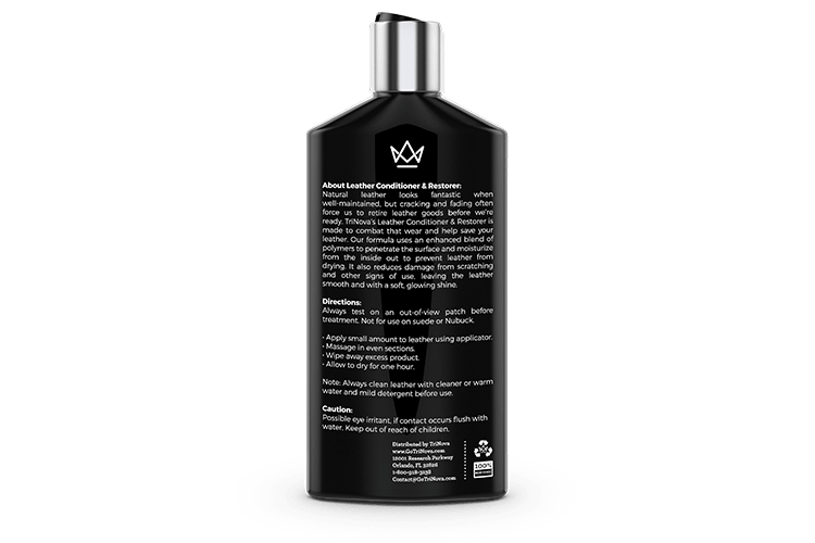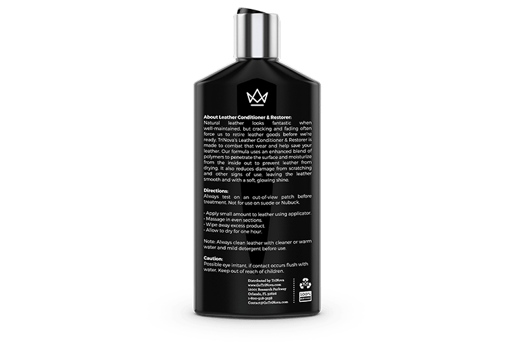 Leather dries out and eventually starts to crack if not care for properly. TriNova Leather Conditioner prevents the fading and cracking of your favorite leather pieces. Safe for any application: cars, purses, shoes, furniture and more. Soften, strengthen and moisturize with one application.