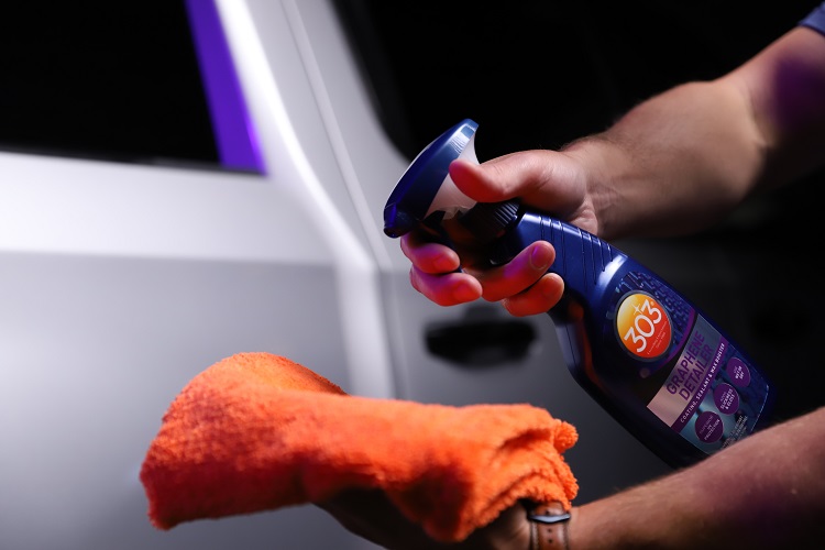 Once you’ve gone over each area of the vehicle, use a separate microfiber towel to buff off the product. And that’s it! You can now enjoy the enhanced gloss, smoothness, and added protection made possible by 303 Graphene Detailer.