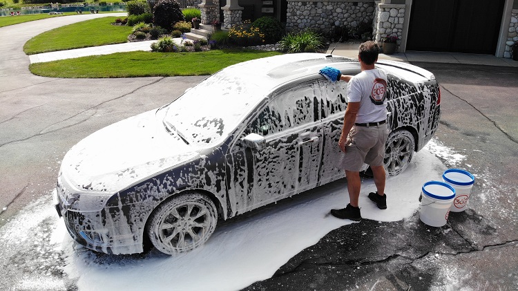 Where you begin washing your car is equally as important as your technique. Always start at the top of your vehicle and work your way back. With this in mind, focus on one panel (section) at a time, starting with the roof. Dip your mitt in the bucket filled with a concentrated car wash, otherwise known as the soapy wash bucket, and rinse when complete. From there, you should move to the following sections in this order: front hood, trunk, front quarter panel, doors, rear quarter panel, front grille & bumper, and rear bumper. It’s important to wash each vehicle section in this order since you want to start with the cleanest parts of the car first and work up to the dirtiest areas.