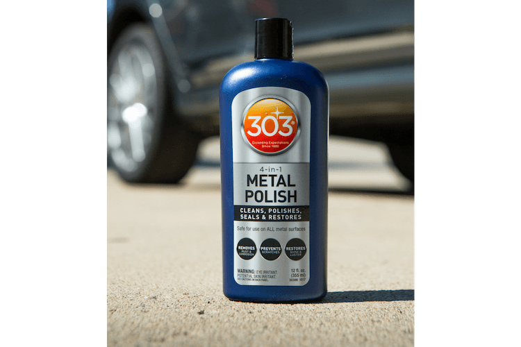 So what types of metals do most people use this polish on? It’s most popular for shining up car wheels. So if your hubcaps or rims are looking a little dull or corroded lately, apply the 303 4-in-1 Metal Polish to the surface to get instant results. You can also apply it to any other metal parts of your car, both inside and outside, including window trim.